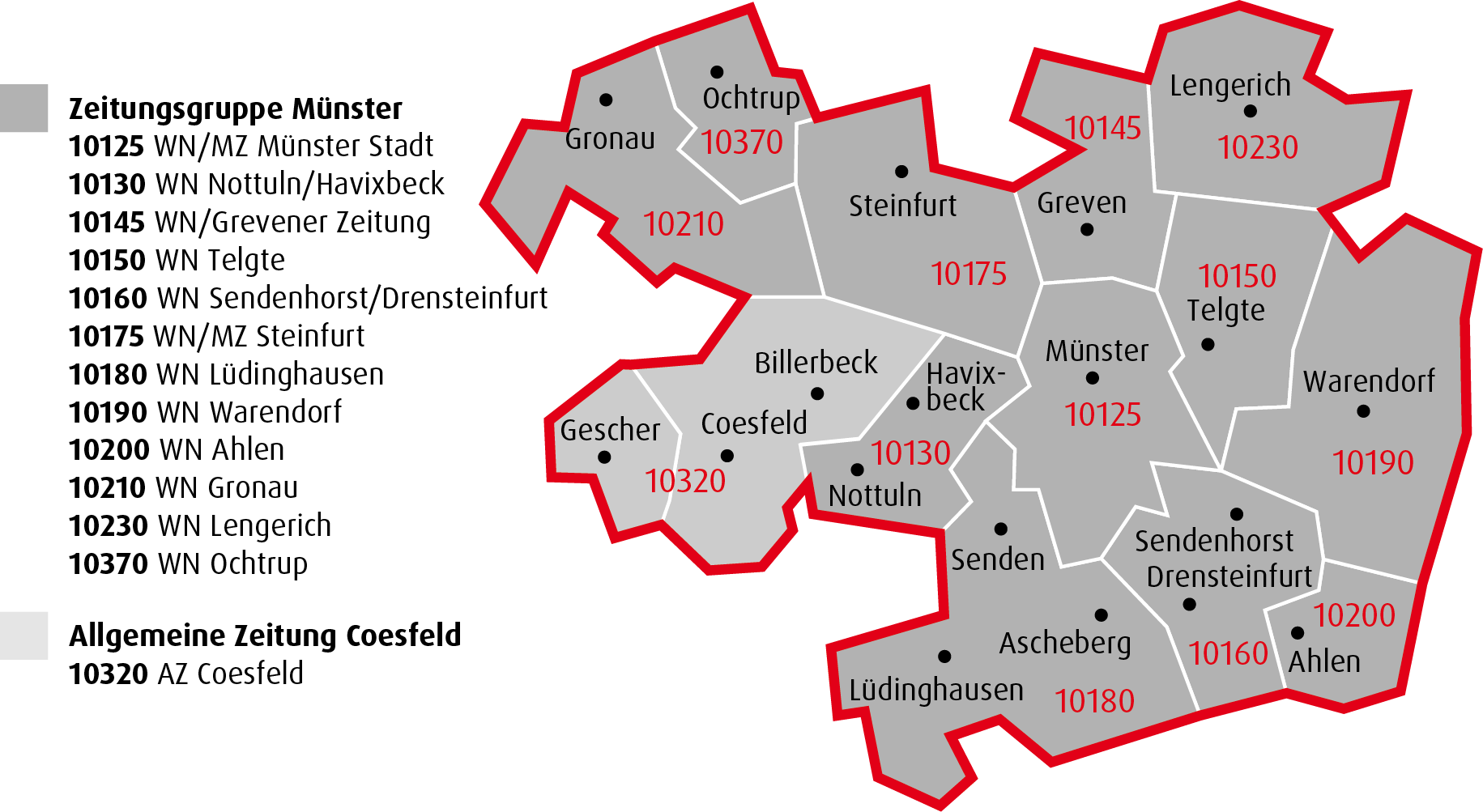 Durch diese Tageszeitungsallianz wird das Angebot an Print- und Online-Werbemöglichkeiten im kaufkraftstarken und attraktiven Münsterland weiter ausgebaut. Erreicht wird damit eine Vollabdeckung der Zielgruppe im Verbreitungsgebiet der Zeitungsgruppe Münster.
